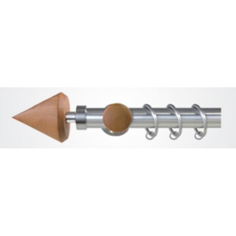 A combination of ‘304’ grade stainless steel rod with wooden finials. The pole has two natural wood shades to match with your interior.